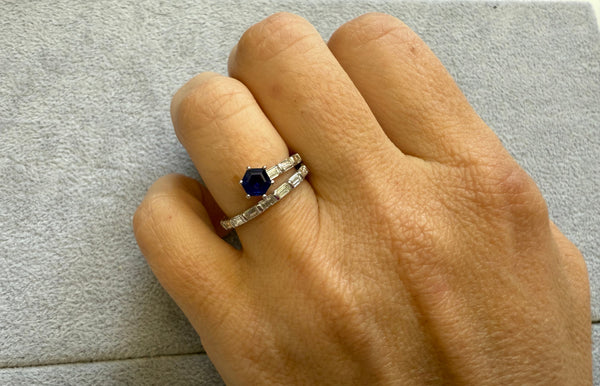 Crafted from Platinum, the magnificent engagement ring comes enriched with 0.77 carats Color H Clarity VVS1 Round Diamond Stone. GIA: 2231480963. Size 4.5 Every single Wedding Ring is handcrafted by...
