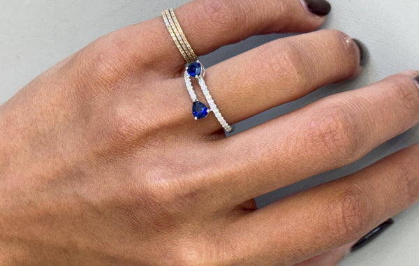 Ring 18kt Rose Gold Open Pear Emerald and Sapphire with Diamonds