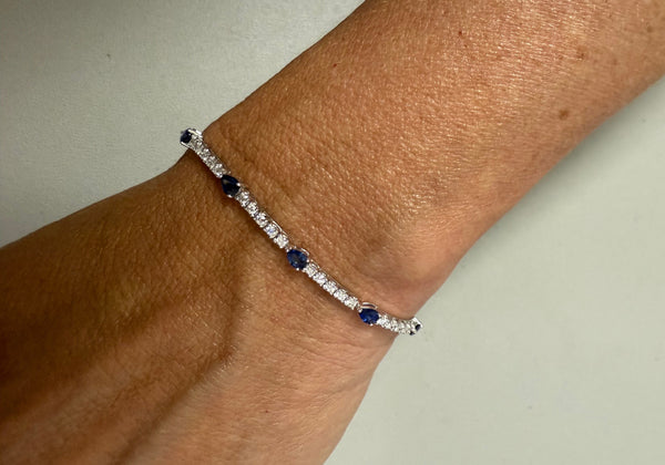 Earrings 18kt Gold Blue Sapphires Two Line Drops and Diamonds