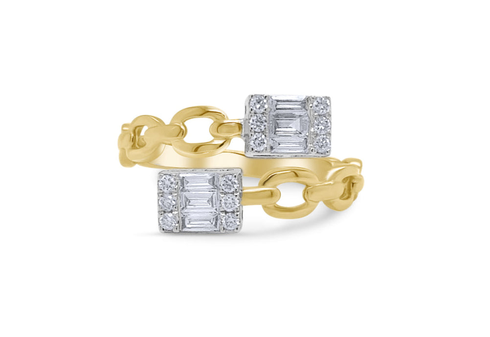Crafted from 18kt White and Yellow Gold You and Me Illusion Diamonds 0,32 carats Solid Chain Ring. Size 6
