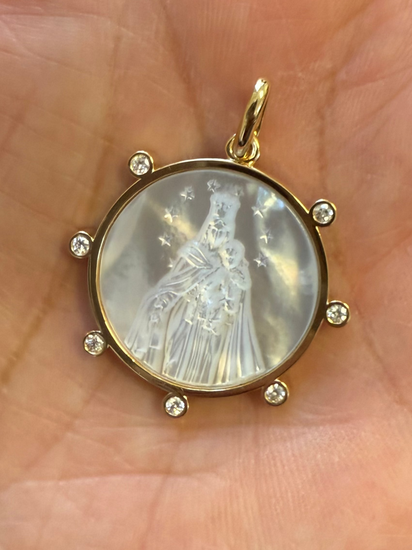 Medal Mother of Pearl Our Lady of Mount Carmen | Virgen del Carmen Gold & Gemstones