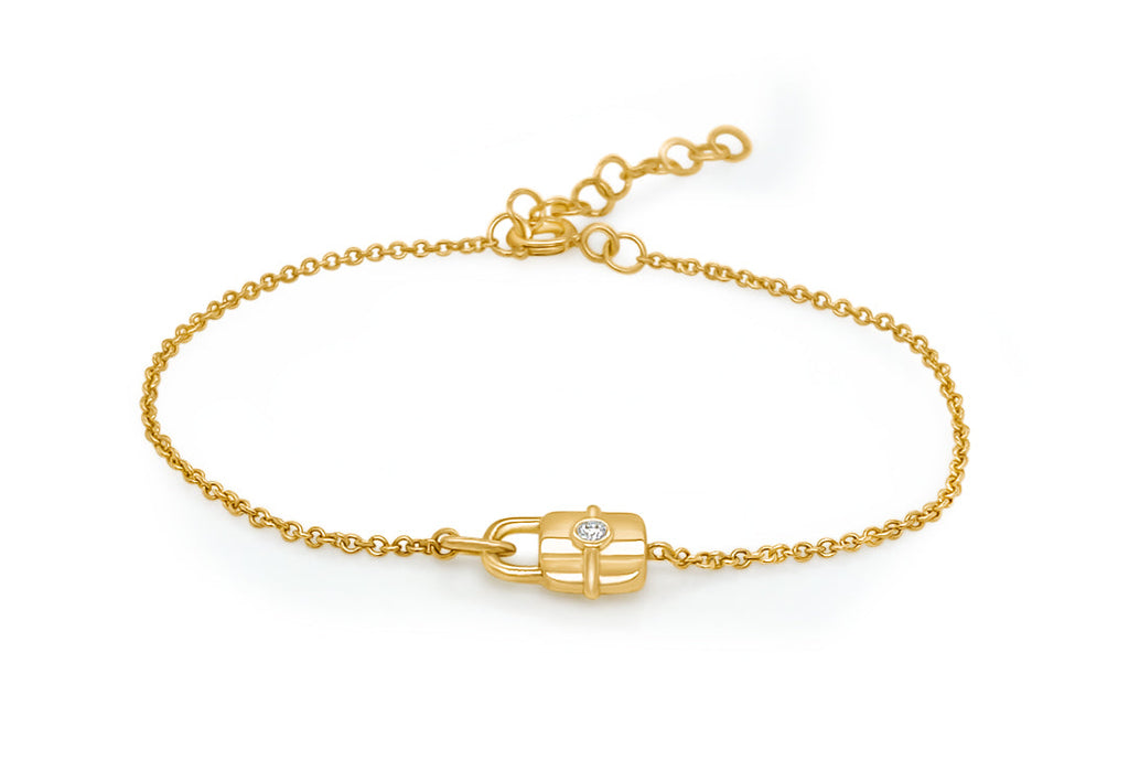 Bracelet 14kt Gold Chain Padlock & Diamond
